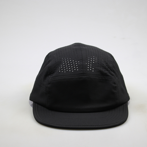 Sombrero con agujero láser negro de secado rápido de 5 paneles de alta calidad personalizado
